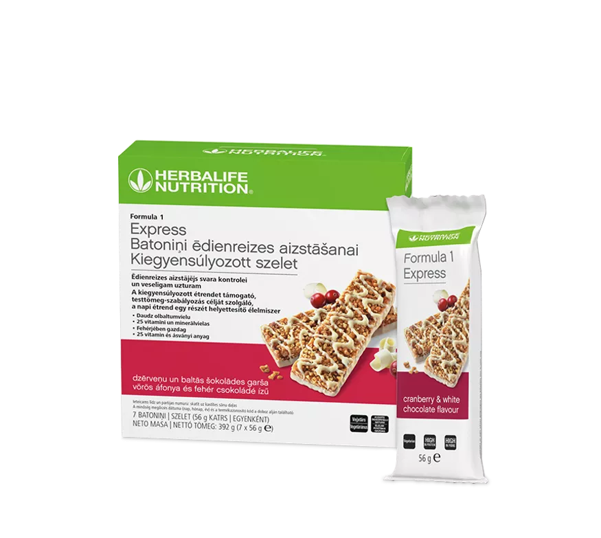 A Formula 1 Express kiegyensúlyozott szelet egy étkezés helyettesítő termék kalóriaszabályozott étrendhez. Biztosítja a szükséges mennyiségű tápanyagot vitaminok és ásványi anyagok, fehérje és rost formájában.